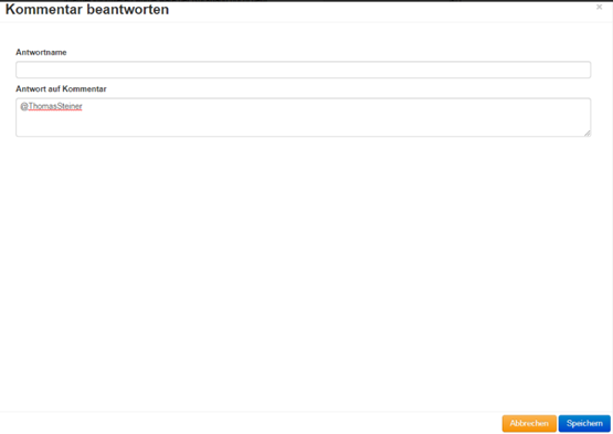Leider hat sie dann einen Bedienungsfehler gemacht und ihre (im Word-Programm verfasste) Antwort in das falsche Feld «Antwortname» kopiert, statt in das Feld «Antwort auf Kommentar» (Screenshot unten).
