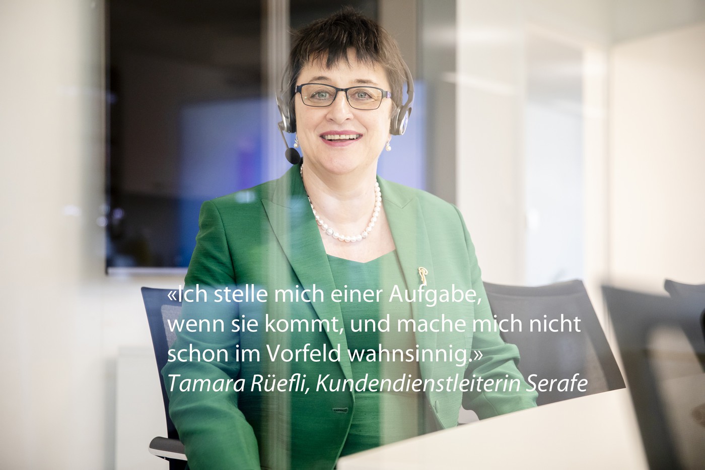 Rüefli ist die Ruhe selbst. Dass sie ab Januar mit einem Schlag quasi 3,5 Millionen Kunden betreuen muss, nimmt sie gelassen. «Ich stelle mich einer Aufgabe, wenn sie kommt, und mache mich nicht schon im Vorfeld wahnsinnig.» Auch mit emotionalen oder gar aggressiven Kunden umzugehen, hat sie als langjährige Krankenkassen-Mitarbeiterin gelernt. «Der liebe Gott hat verschiedene Kostgänger», sagt sie trocken. Wichtig sei, ruhig zu bleiben und Verständnis zu zeigen, auch wenn das Gegenüber gewisse Grenzen überschreite. «Der Kunde soll am Ende sagen, er habe ein sympathisches, professionelles Gespräch gehabt.»