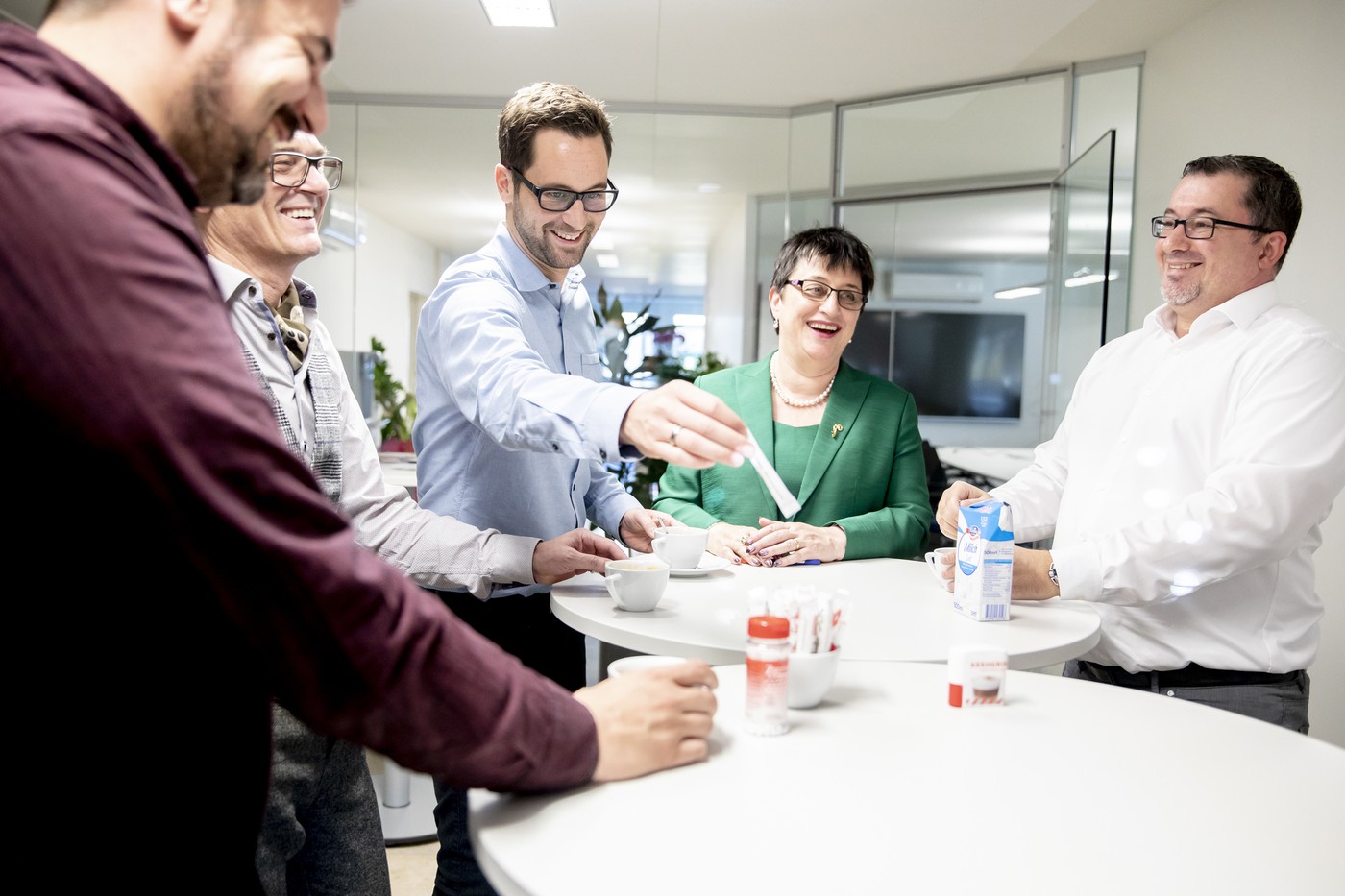 Zur nüchternen Aufgabe passt die Umgebung. Das schmucklose Bürogebäude befindet sich in einer grauen Gewerbezone in Fehraltorf. Essen gehen die Angestellten meistens in der Kantine der Türenfabrik nebenan.