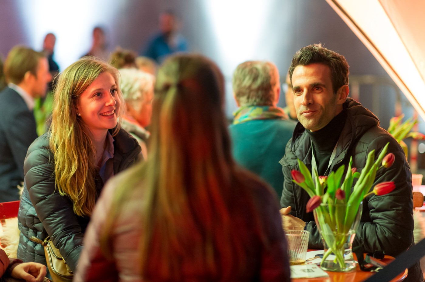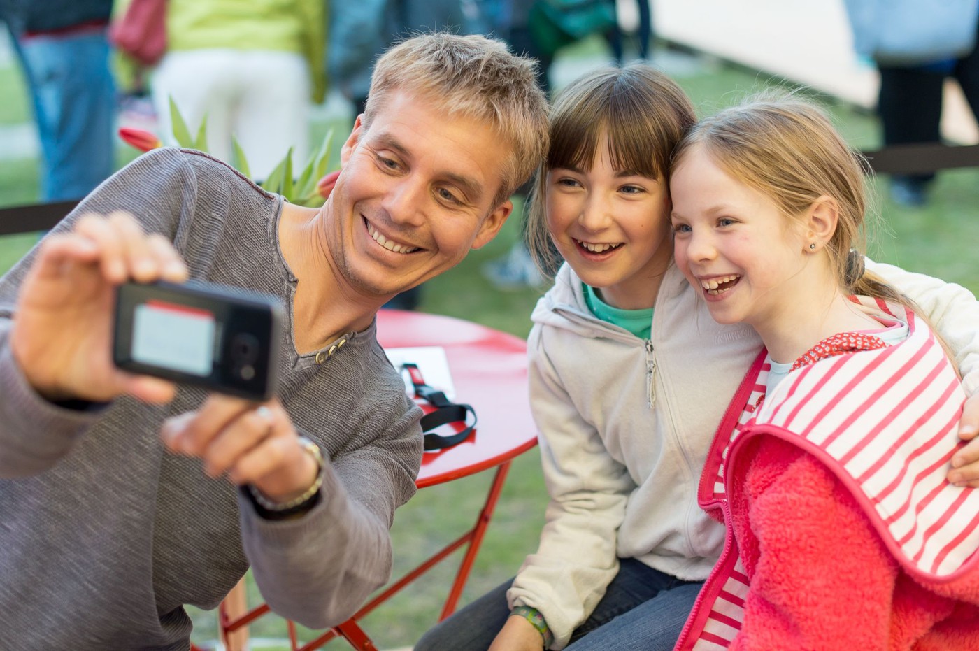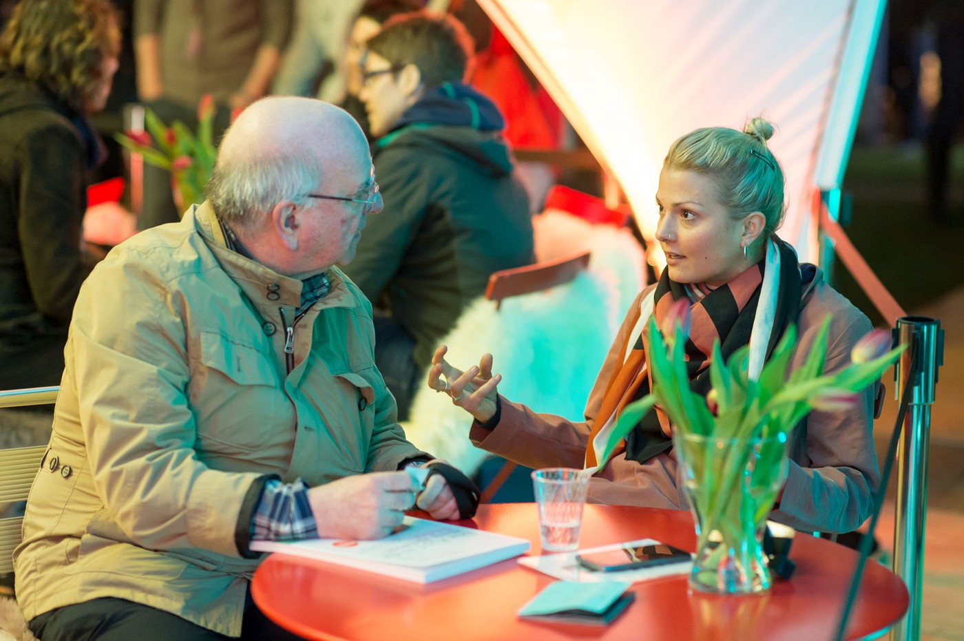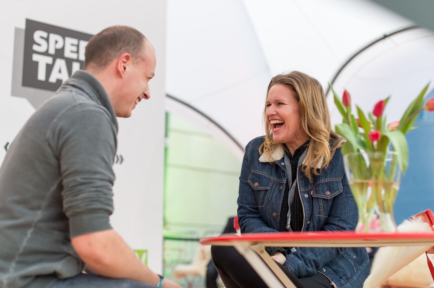 Wohl jeder hat seine Lieblingssprecher. Zwei Schulmädchen wollen unbedingt zu SRF 1-Moderator Reto Scherrer. Mein erster Gesprächspartner wird Musikwellen-Moderator Joël Gilgen sein. Da ich erst im nächsten Gesprächsturnus an der Reihe bin, stelle ich mich zum Publikum vor das Zelt und lausche in die Gespräche hinein. Sarah und Malin, die Reto Scherrer-Fans, knipsen gerade Selfies. «Und? Was möchtet ihr fragen?», höre ich Scherrers Stimme. «Nichts. Wir wollen dir von unserer Pyjamaparty erzählen und dich dazu einladen.» Noch bevor ich die Antwort mitbekomme, wird mein Platz bei Joël Gilgen frei. Ich muss sofort zu seinem Tischchen, sonst beginnt mein fünfminütiges Date am Ende noch ohne mich. Die Countdown-Uhr kennt keine Gnade.