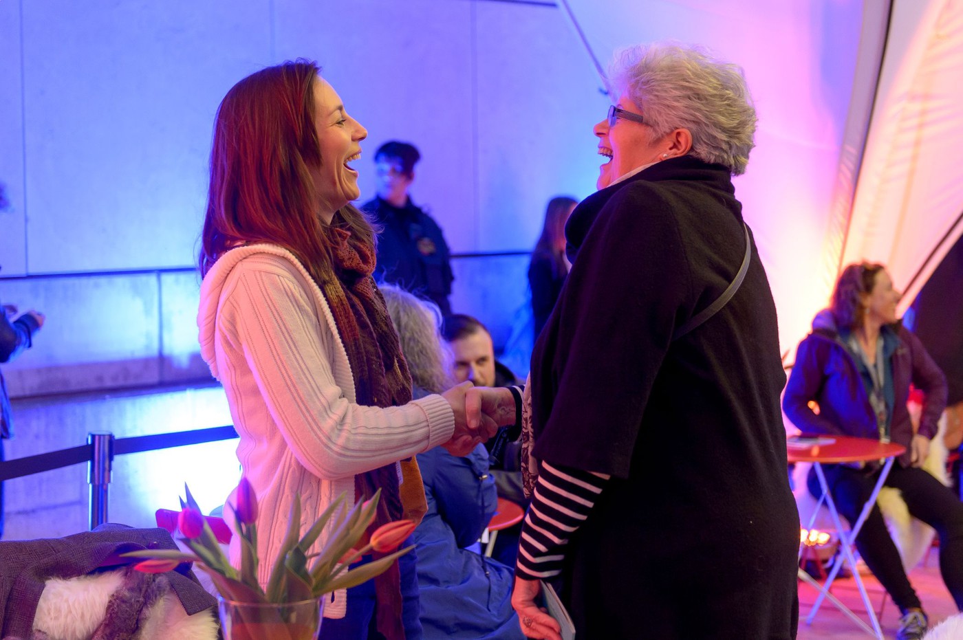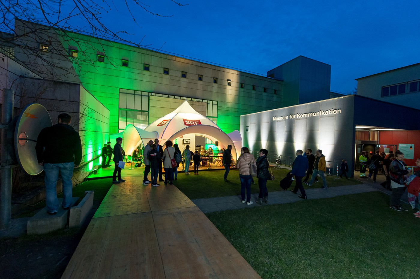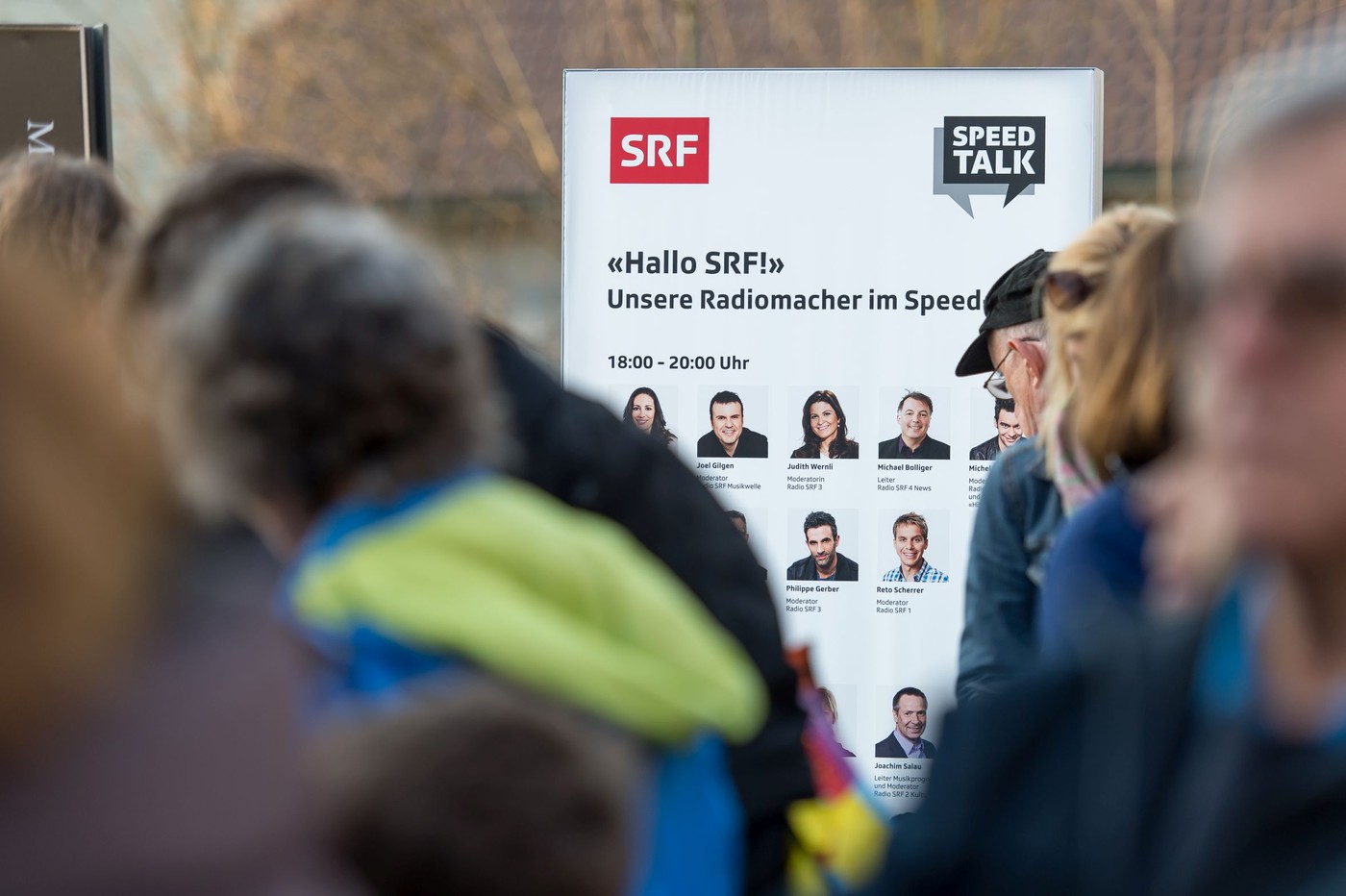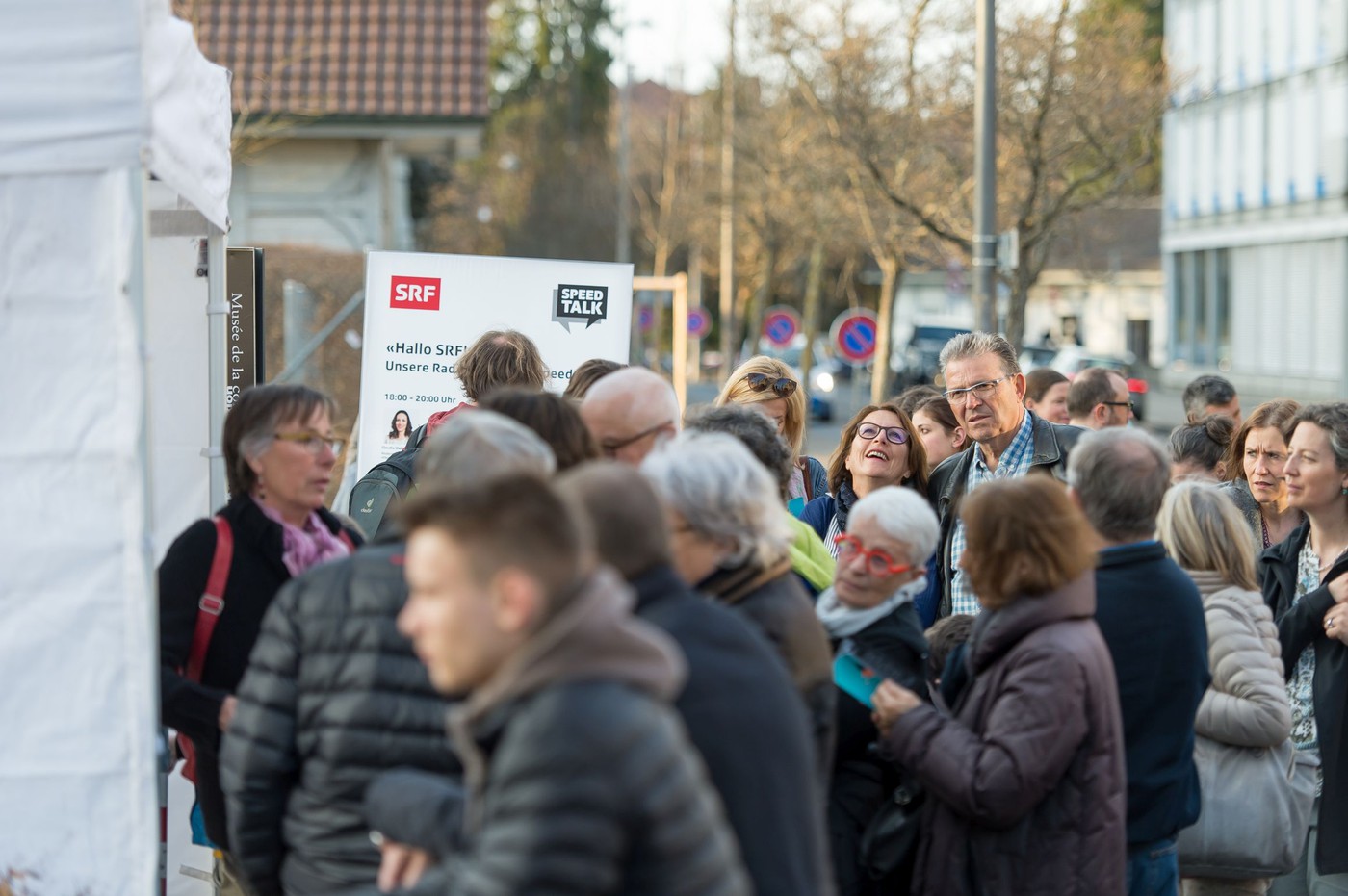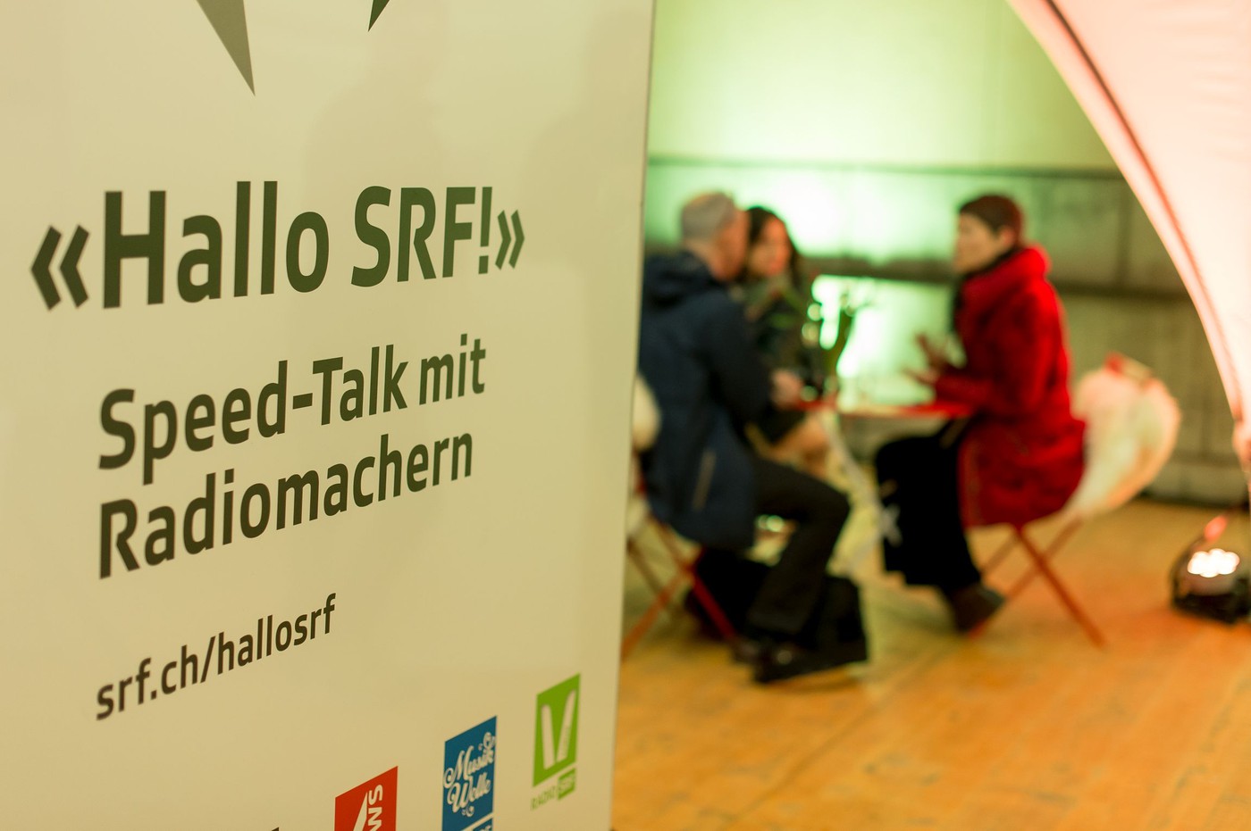 Sie wecken und informieren mich. Sie gehen akustisch bei mir zu Hause ein uns aus. So vertraut mir die Stimmen aus dem Radio sind, die Menschen dahinter kenne ich nicht. Heute, an der Museumsnacht in Bern, ändere ich das. «Hallo SRF!» organisiert beim Museum für Kommunikation Speed-Talks. Dabei handelt es sich um fünfminütige Kurzgespräche zwischen Zuhörern und Radiomachern.