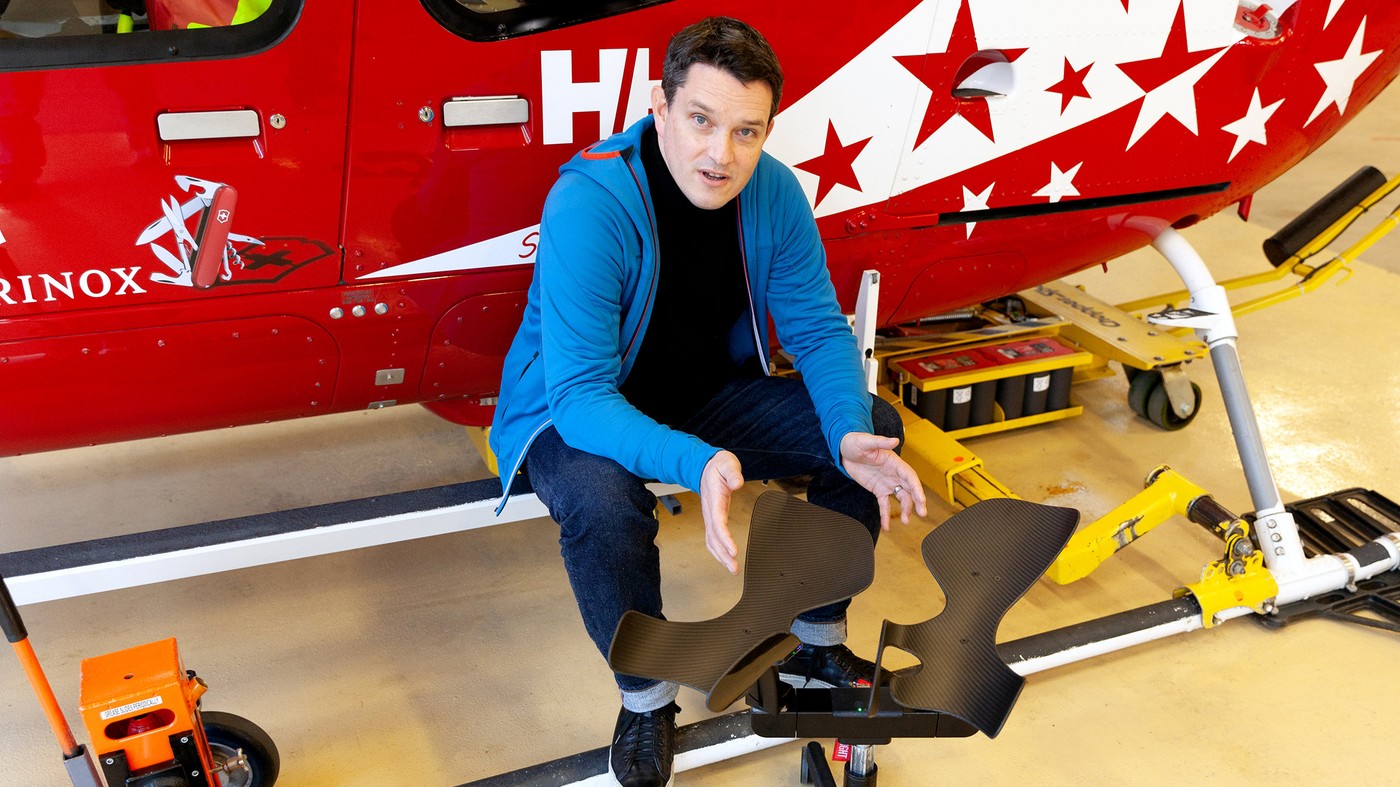 «Ich konnte das kindliche Hirn nie ganz abschalten», sagt der Arzt, Hirnforscher und Innovator Dr. Patrik Künzler. Das Resultat ist ein einzigartiger Stuhl, der vielmehr ein Interface ist, das die Möglichkeit schafft, mit dem Gesäss einen Helikopter zu fliegen.