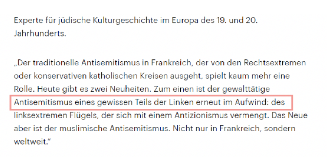 2. Einmal mehr VERSCHWEIGT SRF die Wahrheit. Es gibt -auch in Frankreich- Antisemitismus von Linksextremen. Dies wird einmal mehr verschwiegen.
