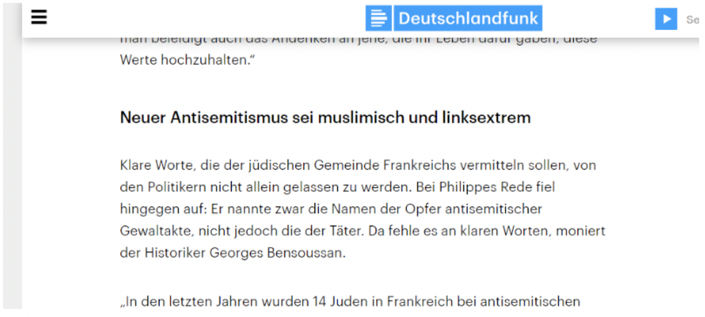 Artikel «Antisemitische Taten erschüttern Frankreich» von SRF News beanstandet