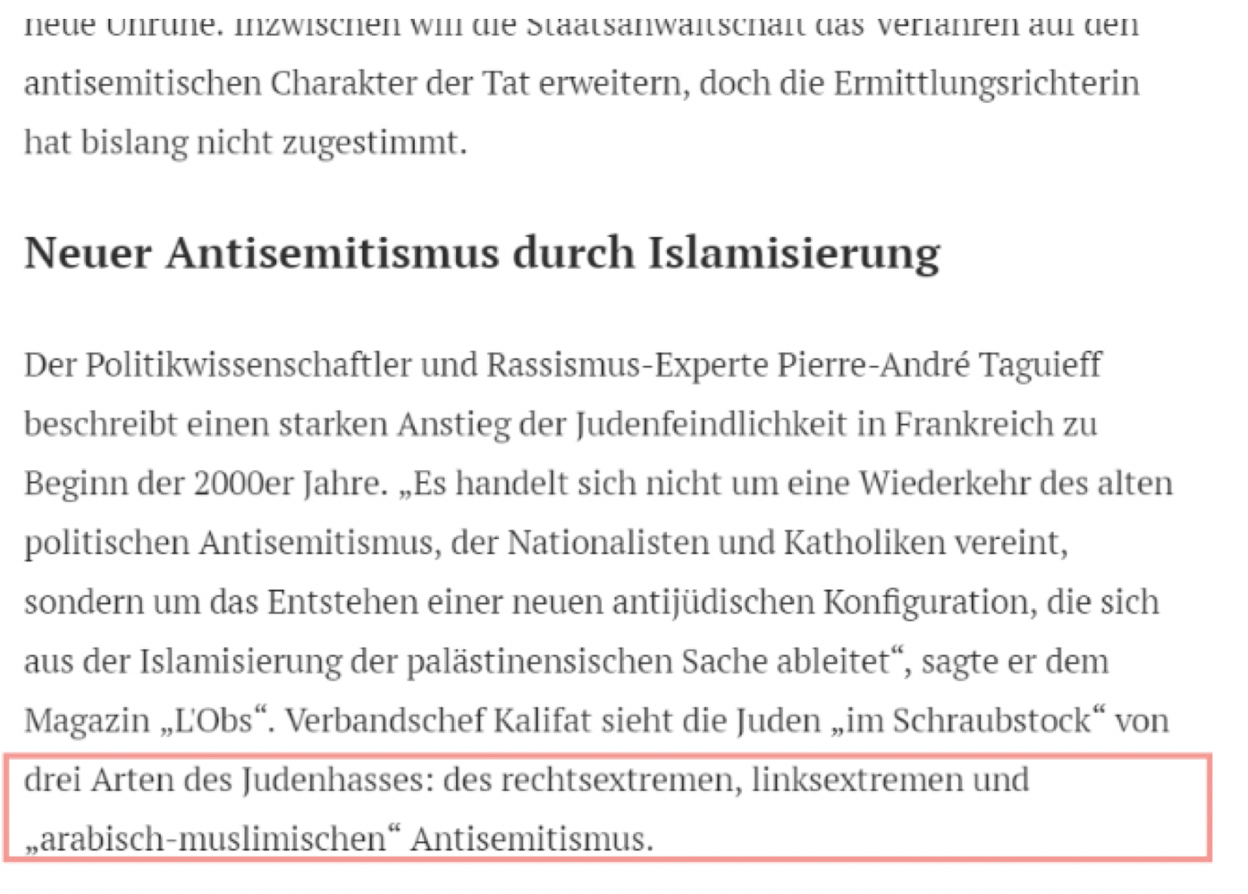 Der Durchschnittsleser wird aus diesem Zwischentitel nicht ableiten, dass alle politisch rechts denkenden Personen automatisch antisemitisch sind.