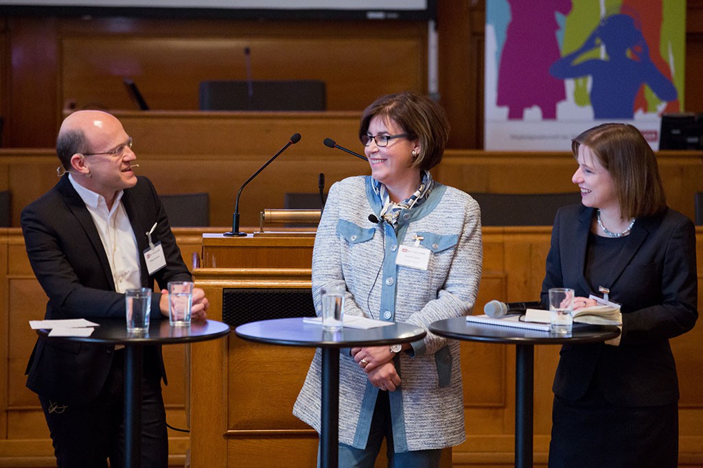 Nationalrätin Christa Markwalder verschaffte im abschliessenden Podiumsgespräch mit Radio SRF-Bundeshausredaktor Philipp Burkhardt und Susanne Hasler, Vizepräsidentin Publikumsrat SRG.D, einen angeregten Überblick. «Ich bin grundsätzlich per du mit den anderen Parlamentariern, zwei Personen ausgenommen. Das wird sich aber auch nicht ändern», schmunzelte Markwalder. «Gegenüber Medien verhält es sich anders: Politiker und Journalisten duzen sich nicht, es sei denn, man kennt sich in einem anderen Kontext», so die Nationalrätin.