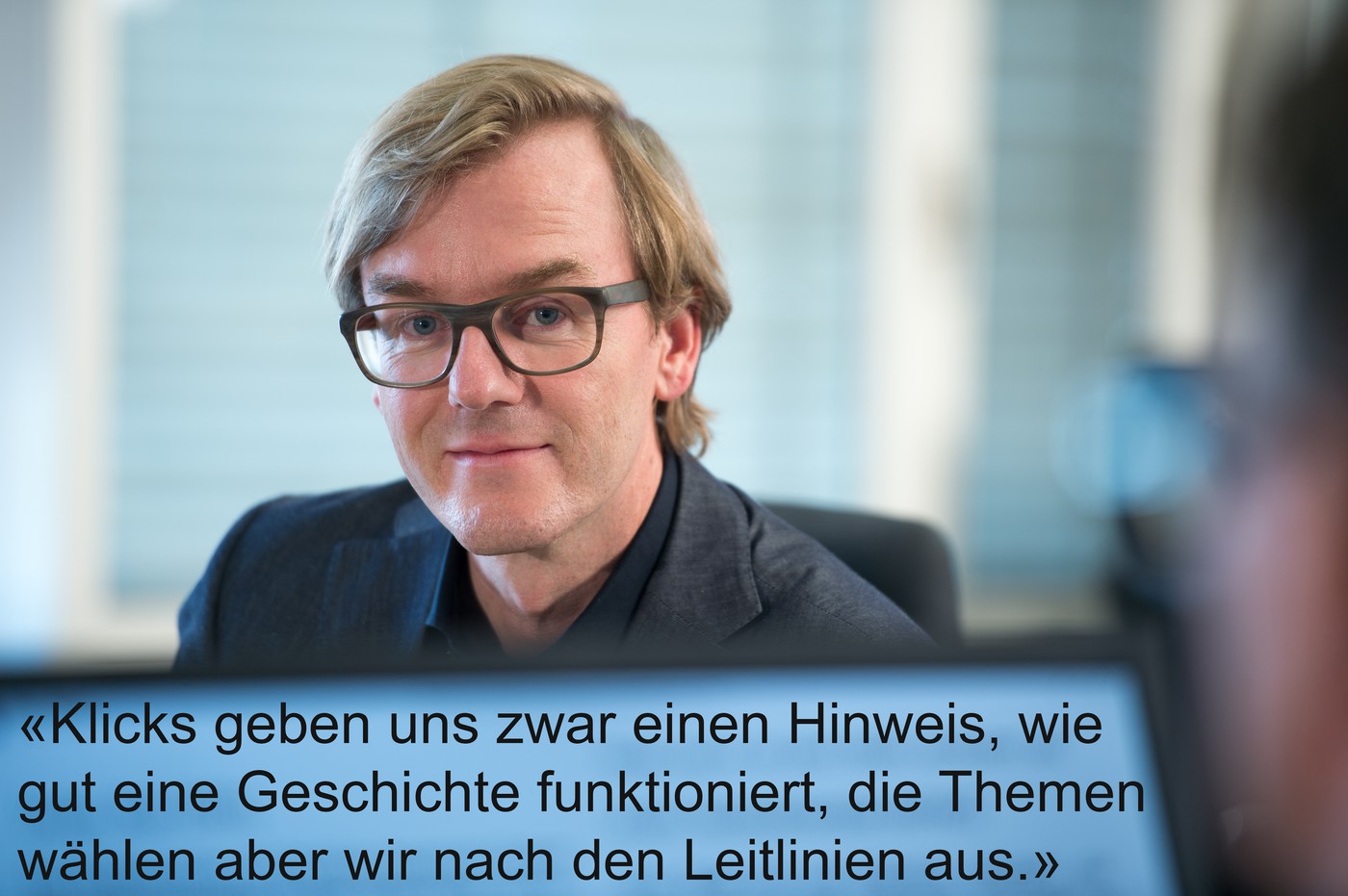 Klicks, Verweildauer, Unique Client: Das sind die neuen Grössen im Online-Geschäft. Ganze Plattformen wie Likemag oder BuzzFeed setzen auf dieses Prinzip: Publiziert wird, was Klicks gibt; Emotionen, Sex, People. Das weckt Ängste. Erwarten den SRF-Leser bald Katzenbilder statt Kantonsratswahlen? Nein, so der publizistische Leiter Livingston: «Für uns gelten die publizistischen Leitlinien von SRF. Wir wollen Einordnung und Illustrationen zu relevanten aktuellen Ereignissen bieten. Klicks geben uns zwar einen Hinweis, wie gut eine Geschichte funktioniert, die Themen wählen aber wir nach den Leitlinien aus.» Als Teil eines gebührenfinanzierten Unternehmens muss sich die Redaktion auch nicht auf Klicks ausrichten. «Wir stehen dafür unter dem Druck, auch schwierige und weniger zugängliche Themen, die zur Meinungsbildung beitragen, an den Nutzer zu bringen», so Manca. «Und: Wir sind wie Radio und Fernsehen zu Qualität verpflichtet», stellt sie klar.