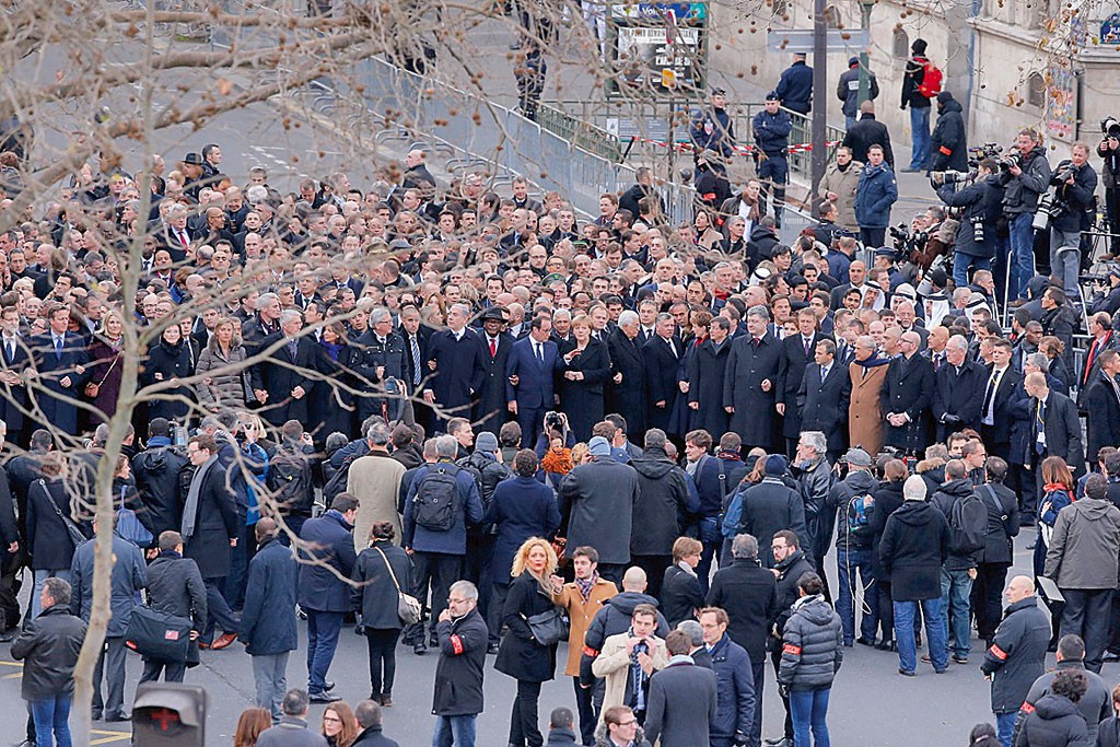 Das Bild ging um die Welt: Der französische Staatspräsident François Hollande führte mit zig anderen Regierungs- und Staatschefs einen Trauermarsch an, um den Opfern des Charlie-Hebdo-Anschlags zu gedenken und ein Zeichen der Solidarität zu setzen.