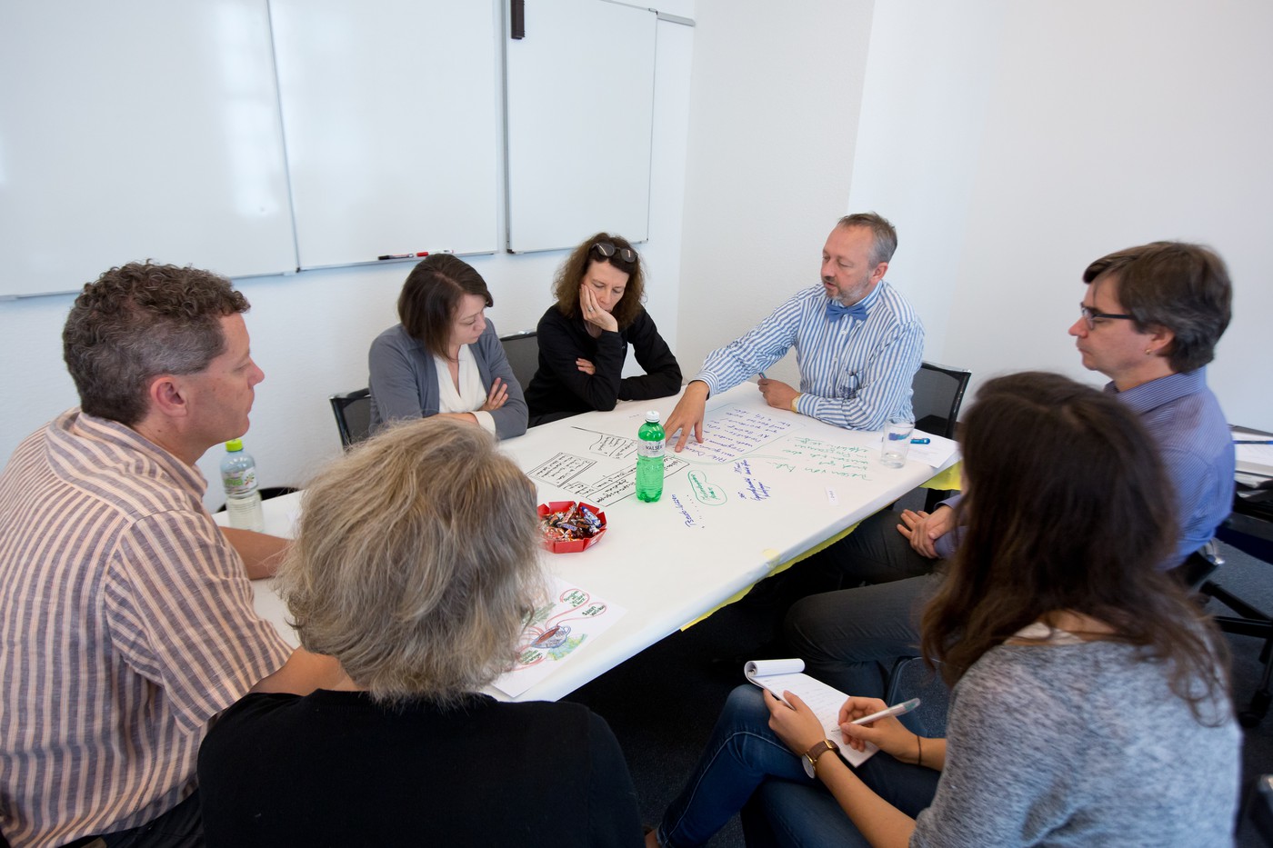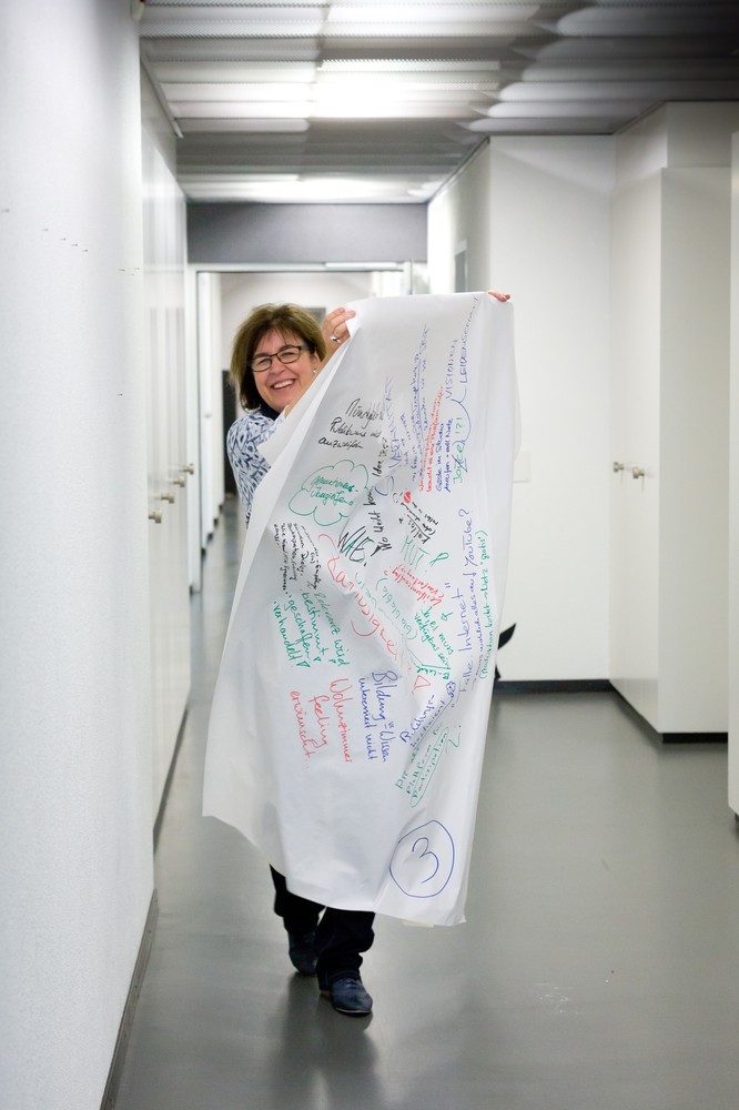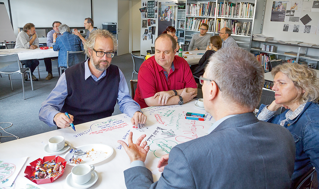 Die Bilder sind vielfältig. In Gruppen diskutieren die Räte eifrig und halten die Ergebnisse auf Papier fest. Die einen zeichnen einen Kompass: «SRF sollte das Orientierungswissen fördern und damit die Leute befähigen, Relevantes von Irrelevantem zu unterscheiden.» Andere malen die Grundsteine eines Hauses; ein Bauprojekt, das nicht so schnell abgeschlossen wird. Denn SRF solle lebenslanges Lernen ermöglichen, meinen sie.