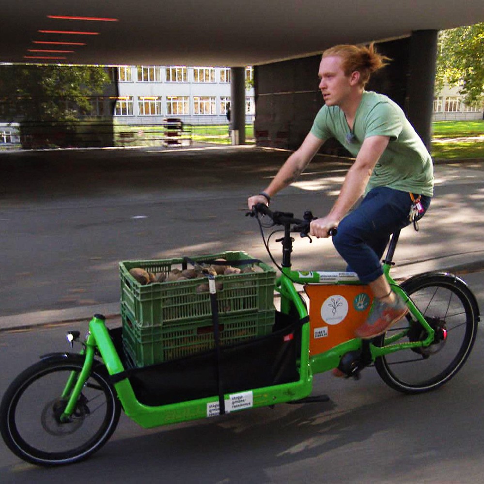 Dominik macht Foodsave-Aktionen über Social-Media-Plattformen und baut einen Gemüsehandel mit Zweitklassgemüse auf.