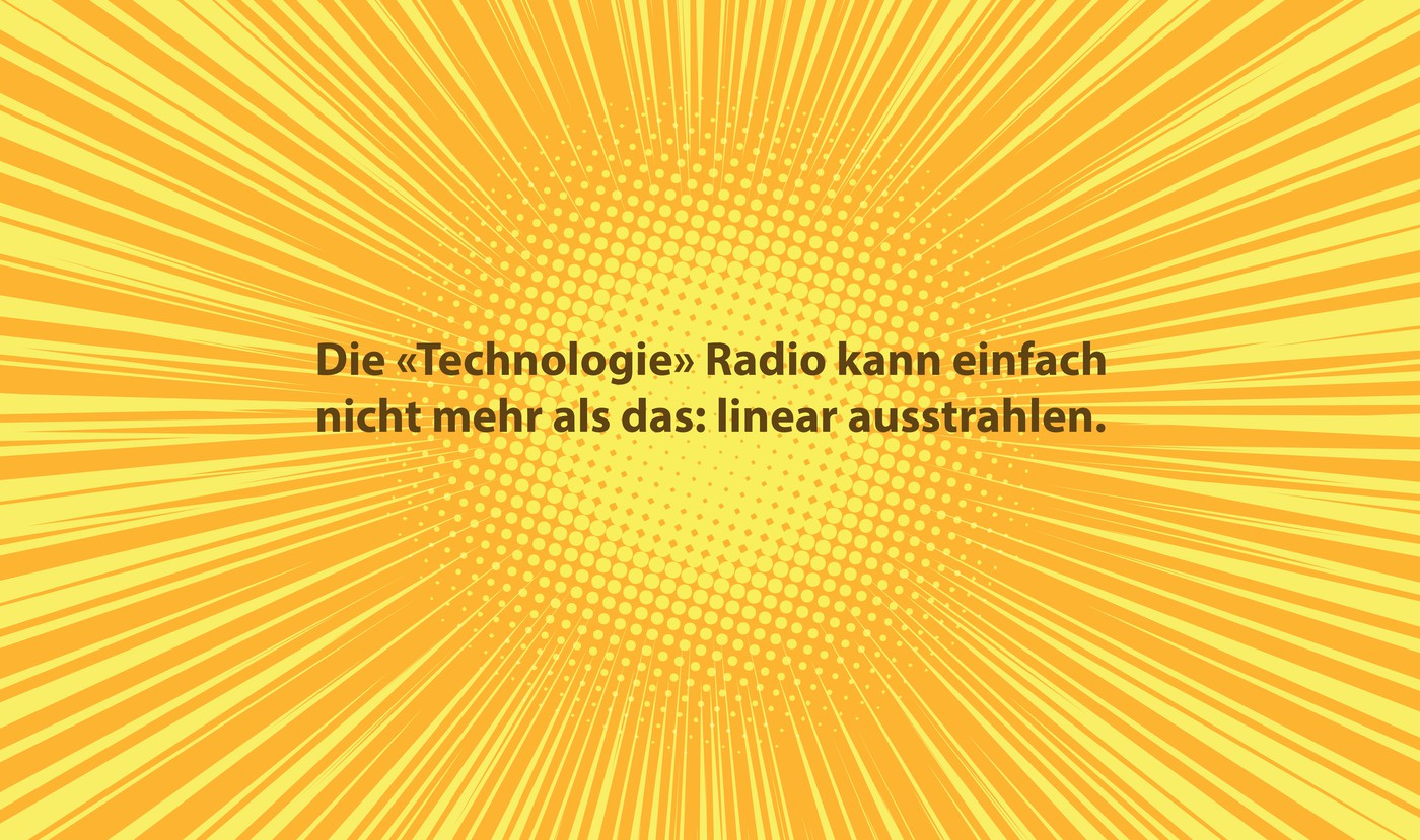 Traditionelles Radio fällt mit der klassisch-linearen Form in die «one size fits all»-Falle, die eigentlich noch nie allen immer nur gefallen hat. Und dennoch akzeptierte man mit der Zeit, auch auf der Empfängerseite, die technische Limitierung.