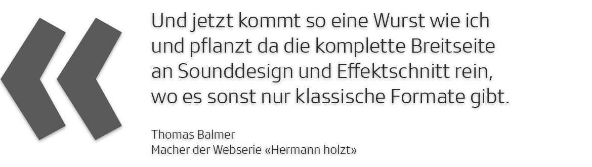 «Hermann holzt» ist das erste Webformat, das es auf diesem Kanal zu sehen gibt und dann ist es gleich noch eines mit einer grossen Fülle an Sounddesign und Effektschnitt. Da verwundert es Tommy nicht, dass das für ein Publikum, das solche Formate nicht kennt, sehr irritierend wirken kann.