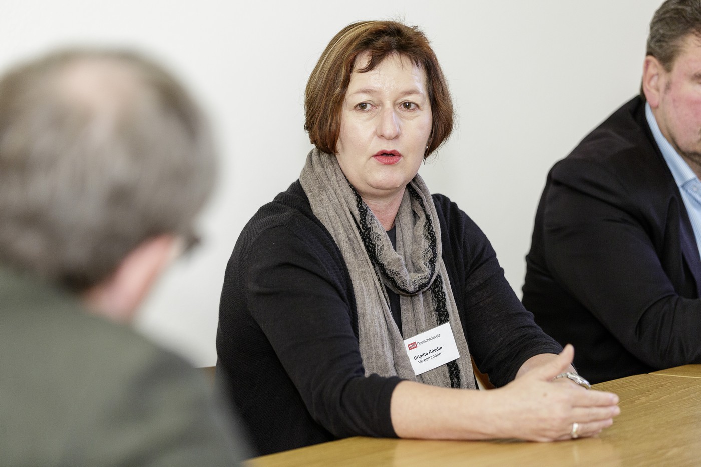 In einer zweiten Diskussionsrunde, nach den erwähnten Workshops, trafen Stadtpräsidentin Susanne Hartmann (Wil) und die Stadtpräsidenten Valentin Schmid (Spreitenbach) und Christian Marti (Glarus) auf die beiden Programmschaffenden Katrin Hug (Leiterin Regionaljournal Zürich Schaffhausen) und Basil Honegger (Redaktionsleiter «Schweiz aktuell»). Es wurde auch hier wieder engagiert und praxisbezogen diskutiert, einzelne Fälle wurden vertieft angeschaut und von beiden Seiten beleuchtet. Kompetent und immer auch mit einer Prise Humor moderiert wurde der Anlass vom Publizisten und SRG ZH SH-Gremienmitglied Matthias Wipf, der die Diskussion locker in Fluss hielt und den Protagonisten pointierte Aussagen entlockte.