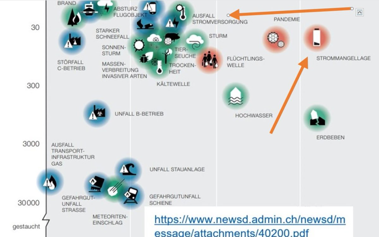 Nicht vergeben warnt das Bundesamt für Befölkerungsschutz BABS Vor Strommangellage und Stromausfall aus oben genannten Gründen.[3]
