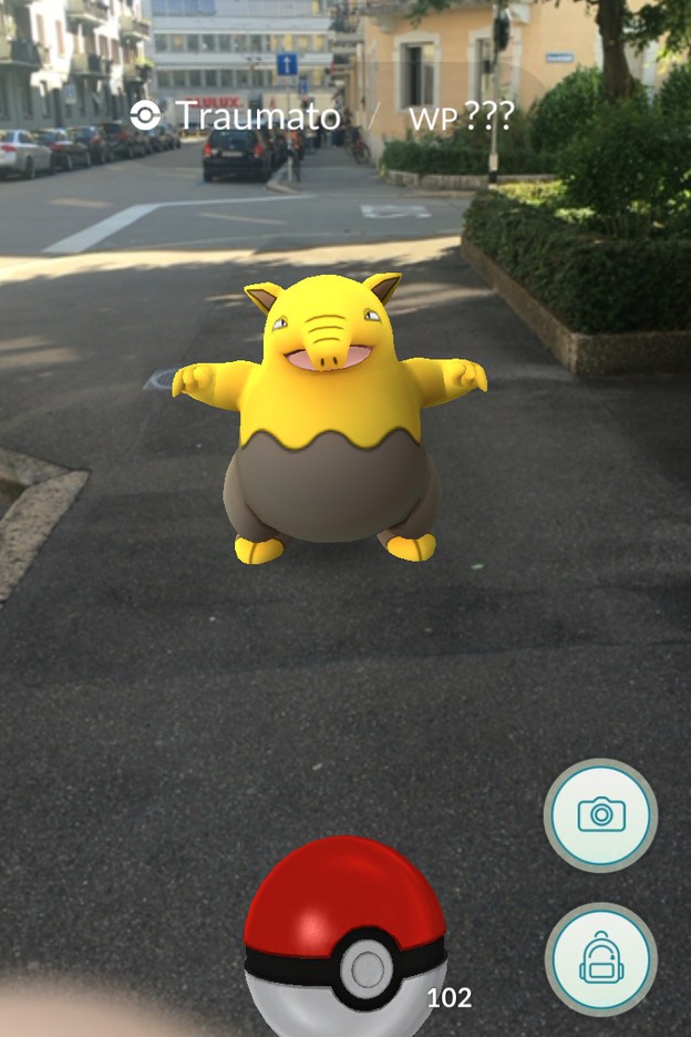 Gudio ist draussen unterwegs mit seinem Smartphone und sieht sich die Karte an. Dazu bewegt er sich physisch. Die Pokémon in der Nähe werden angezeigt und auf einer Anzeige erkennt er, ob er sich auf darauf zubewegt oder sich entfernt. Indem er einen rot-weissen Pokéball auf das Monster wirft, kann er es schliesslich einfangen. Wie immer in Pokémon-Games kann man seine Pokémon verstärken – und mit ihnen kämpfen. Es geht darum, Territorium in der Stadt zu erobern und zu halten. Dabei ist Guido als «Trainer» einem Team zugeteilt – er hat natürlich Team Weisheit (blau) gewählt. Neben den Arenen gibt es ausserdem noch Pokéstops. Dort können Gebrauchsgegenstände eingesammelt werden.