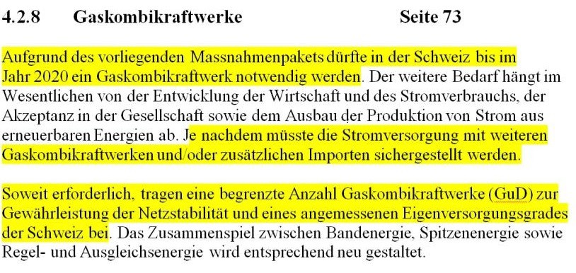 In der Botschaft zur ES2050 vom 4.9.13 steht, dass ab Jahr 2020 Gaskombikraftwerk nötig ist. Seite 73[3]