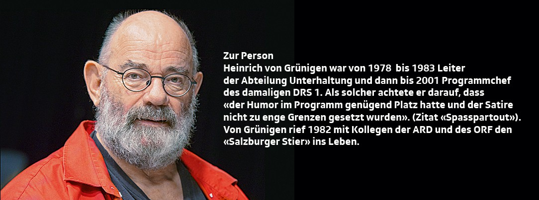 In den drei Radiostudios hatten sich damals ganz unterschiedliche Formen der Unterhaltung entwickelt. In Bern stellte Inlandredaktor Friedrich Salzmann jeden dritten Samstag «mit kritischem Griffel» pointierte Betrachtungen zur politischen Situation des Landes an. In Basel waren Margrit Rainer und Ruedi Walter als Ehepaar Ehrsam am «Spalebärg 77a» zum Kultduo geworden, und in Zürich war das Radiokabarett mit Elisabeth Schnell, Ueli Beck und anderen zugange, Hans-Peter Meng heizte die Debatte um heikle Themen mit «Mini Meinig – dini Meinig» an. Im Fokus des bissigen Radiospottes standen oft die Bundesräte, wofür der SRG-Generaldirektor gelegentlich magistrale Schelte einstecken musste.