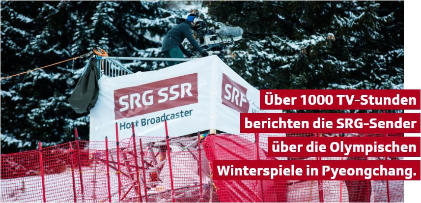 Die SRG stellt Schweizer Sportlerinnen und Sportler in den Mittelpunkt und bietet ein Programm, das auf schweizerische Bedürfnisse zugeschnitten ist. Das heisst: Die SRG begleitet das Schweizer Sportgeschehen im In- und Ausland und ist hautnah dabei, wenn Schweizer Sportgeschichte geschrieben wird – auch an den Olympischen Winterspielen 2018 in Pyeongchang.