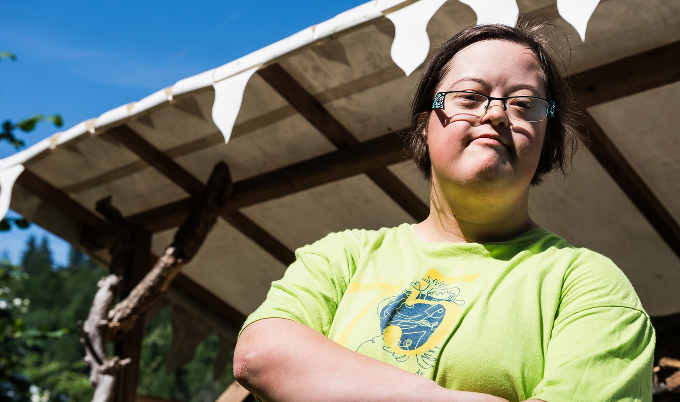 Andrea Schibli (30, aus Eglisau ZH) wohnt in einer Wohngruppe in der Institution Hof Wagenburg in Seegräben ZH und arbeitet im dazugehörigen Landwirtschafts- und Gemüsebaubetrieb. Sie ist Frühaufsteherin und arbeitet gerne in allen Bereichen des Hofes und des Haushaltes. Am liebsten aber bügelt sie die Wäsche. Ihre Freizeit verbringt Andrea mit ihrer Freundin, im Kino oder beim Shopping. Andrea wandert aber auch gerne und fährt Ski.