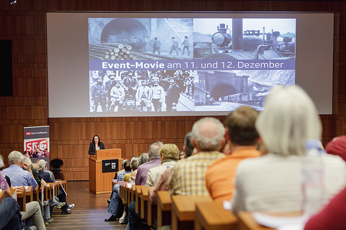 Knapp 300 Mitglieder und Gäste durfte Präsidentin Barbara Meili am 11. Mai an der Generalversammlung der SRG Zürich Schaffhausen begrüssen. Vor den eigentlichen statutarischen Geschäften skizzierte Andreas Schefer, neuer Präsident der SRG.D, in seinem Grusswort das aktuelle medienpolitische Umfeld, in dem es «für die SRG knüppeldick kommen» könnte – und appellierte umso mehr an die Genossenschafterinnen und Genossenschafter, diese Herausforderungen «als Chance zu begreifen» und «den Gegenwind wie beim Speerwerfen für Aufwind zu nutzen ». Anschliessend berichtete Nathalie Wappler, Abteilungsleiterin Kultur SRF, über den grossen trimedialen Themenschwerpunkt «Gotthard», der sich von der Eröffnung des Basistunnels Anfang Juni mit verschiedensten Sendungen, Live-Berichten und Dokumentationen bis Ende Jahr hinziehen wird. Das Publikum zeigte sich von dieser «grossen Kiste» und den gezeigten ersten Filmausschnitten tief beeindruckt. Nach diesem attraktiven Rahmenprogramm wurden Präsidentin Barbara Meili (Zürich) und ihre Vorstandsmitglieder Werner Marti (Herrliberg), Mirjam Hassler (Teufen), Iris Kuster (Winterthur), Riccardo Pozzi (Meisterschwanden), Vinzenz Wyss (Männedorf) und Heinz Gantenbein (Nänikon) für eine weitere Amtszeit von vier Jahren gewählt. Dazu ersetzen Susanne Sorg (Tagelswangen) und Urs Ramer (Schlieren) die zurücktretenden Jana Kaufmann und Andi Melchior, die mit einer schönen Würdigung, Geschenken und warmem Applaus verabschiedet wurden.