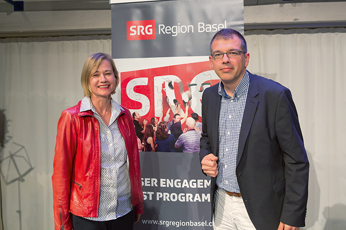 In rekordverdächtiger Kulisse – rund 360 Mitglieder und prominente Gäste fanden sich im Theater-Foyer zur Jubiläums-GV ein – feierte die SRG Region Basel ihr 90-jähriges Bestehen. Regierungsrat Hans-Peter Wessels und SRG-Generaldirektor Roger de Weck betonten beide die Rolle der SRG als Garantin der Medienvielfalt in den Regionen. Der Basler Regierungsrat Hans-Peter Wessels unterstrich in seinem Grusswort die Bedeutung gut informierter Bürgerinnen und Bürger für die Politik. In diesem Sinne begrüsse die Regierung das neue Studioprojekt im Gundeli und freue sich über das klare Bekenntnis der SRG für den Standort Basel. Dadurch schaffe sie nicht nur wichtige qualifizierte (Medien-) Arbeitsplätze, sondern sei auch eine wichtige Stütze für die Medienvielfalt in der Region. Mit ihrem auftragsbestimmten Angebot leiste die SRG einen grundlegenden Beitrag zur Meinungsbildung. Wenn diese beschädigt werde und der aufgeklärte Zugang zu Informationen und Analysen nicht mehr gewährt sei, bleibe der Prozess der Entscheidungsfindung auf der Strecke. Hierfür werde sich die SRG – auch mit Blick auf die anstehenden medien-politischen Debatten − dezidiert einbringen. Der Wille, Kultur im Dienste des Programms zu fördern, sei ein weiterer wichtiger Anspruch eines «öffentlichen Medienhauses». Dies manifestiere sich u. a. im Entscheid für den neuen SRG-Kulturstandort in Basel. Im Rahmen der Ersatzwahlen für die laufende Amtsperiode 2016 bis 2019 wurden Ursula Hartenstein, Leiterin des Swisslos-Fonds Basel-Stadt, und Journalist Matthias Zehnder mit grossem Mehr in den Vorstand gewählt. Die SRG Region Basel freut sich über die kompetente Verstärkung und gratuliert zur Wahl.