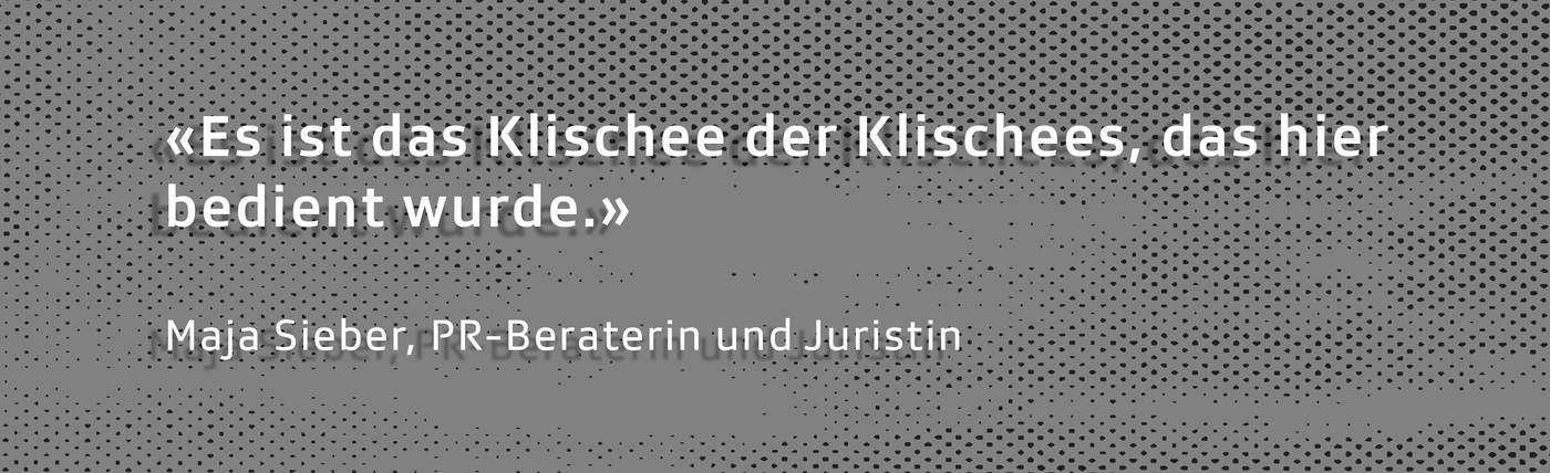 UBI-Vizepräsidentin Catherine Müller merkt an, dass das Klischee von solchen Frauen zum Fussballzirkus gehöre: «Die Würde der Frau wurde durch diesen kurzen Ausschnitt nicht auf sekundäre Geschlechtsteile reduziert». Es werde somit nicht stereotypisch die Gleichwertigkeit der Geschlechter in Frage gestellt. Es sei «ein plumper, leicht pubertierender Witz, den vielleicht einige Männer lustig finden», meint UBI-Präsidentin Mascha Santschi. «Nicht jeder Humor ist Satire, deshalb gilt es das Privileg der Satire zu schützen. Für Humor gibt es aber kein Privileg» hält Nadine Jürgensen fest.