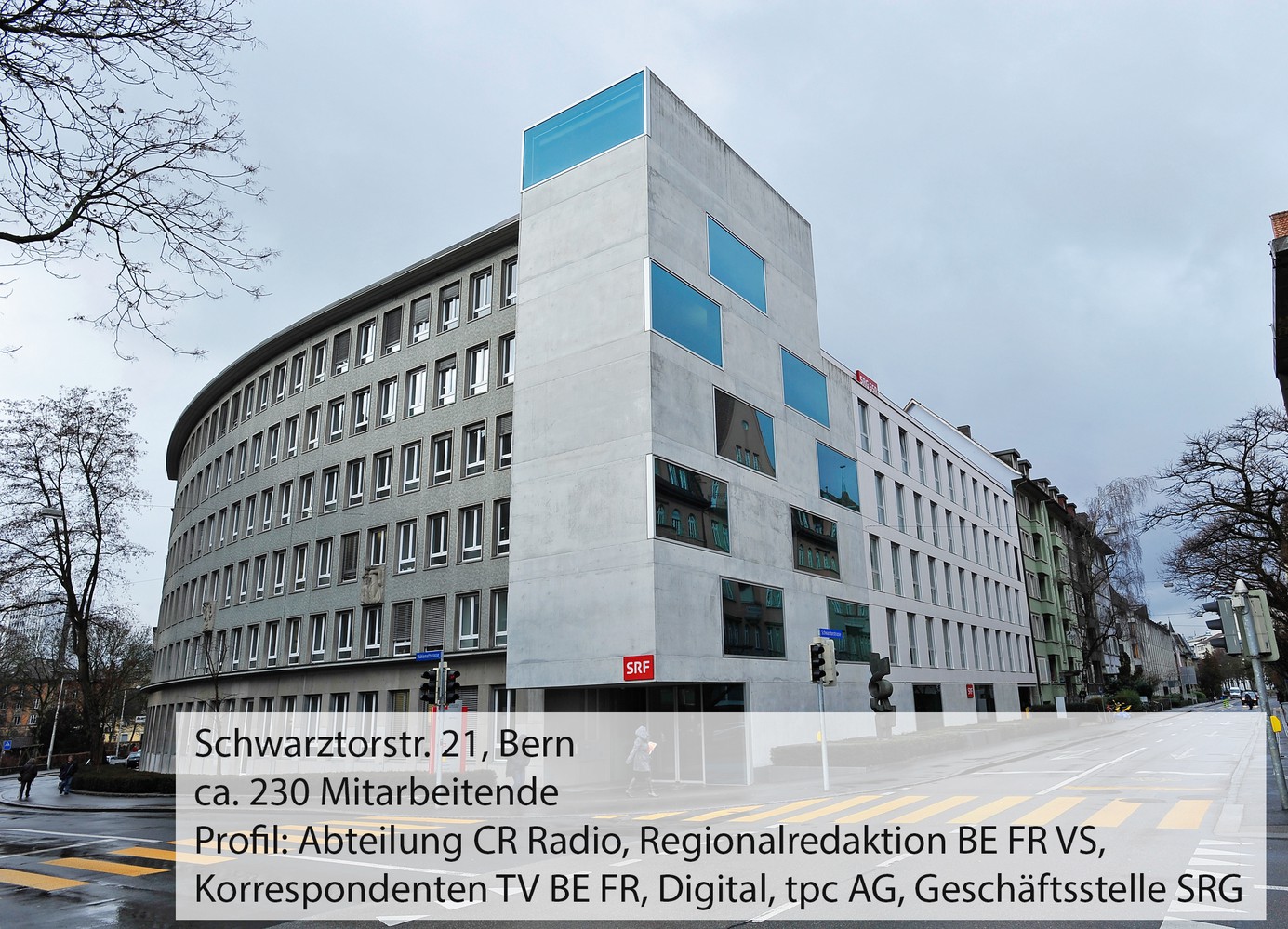 Die Radiogenossenschaft Bern wurde am 15. August 1925 gegründet, kurz darauf offiziell Radio Bern. Gemäss der aktuellen Internetseite der SRG Bern Freiburg Wallis «ausser Rom der einzige europäische Sender, der Frauen im Sprechdienst beschäftigte». 1927, im zweiten Jahr nach Inbetriebnahme, sendete Radio Bern knapp sechs Stunden täglich. Das Studio war, wie auch andernorts üblich, in einem sogenannten Bestandesbau domiziliert, im Kursaal Schänzli. 1931 fand der Umzug in Räume an der Schwarztorstrasse statt.