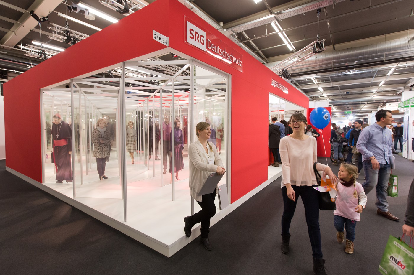 Mit dem begehbaren Spiegelkabinett «Spiegel der Schweiz» machte die SRG Deutschschweiz die SRG SSR als Institution und ihre Medien an verschiedenen Publikumsmessen sinnlich erlebbar. Die Installation war während drei Jahren auf Tour. 2015 stoppte sie an der MUBA in Basel und fand ihren Abschluss an der BEA in Bern. Gastgeber waren die SRG-Mitgliedgesellschaften der jeweiligen Regionen.